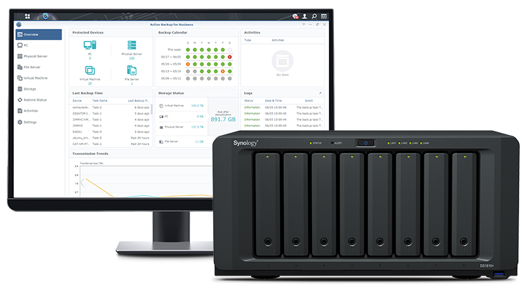 Synology NAS 及 Active Backup 系列的軟硬整合搭配備份及還原功能的一體機,集中管理數據,簡化采購、部署及技術支持服務。