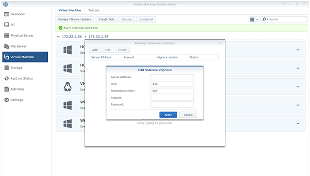 Active Backup 提供多個解決方案保護分散于云端應用與內部服務的商業(yè)負載,滿足混合式環(huán)境的備份與還原需求。